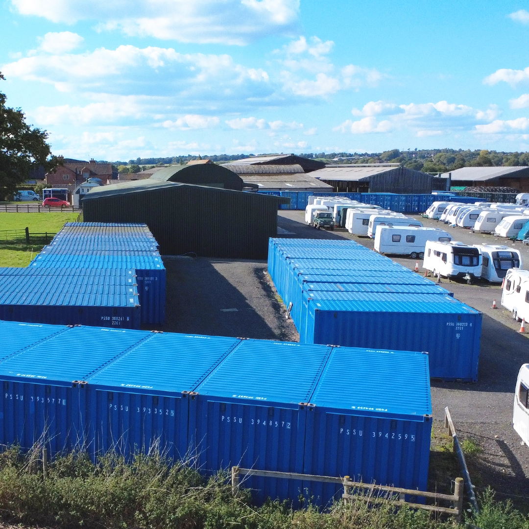 Our sturdy steel storage units are 20ft (6.06m) x 8ft (2.4m) x 8ft (2.6m) which is approximately the volume of a double garage and enough space to store the furniture of an average 3/4 bedroom house.